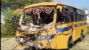 स्कूली बस और कैंटर में भिड़ंत, पांच छात्र घायल,चालक की हालत गंभीर,ग्वालियर रेफर