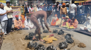 Bhind. ग्वालियर इटावा सिक्स लेन हाईवे की मांगों को लेकर संत समाज का आंदोलन जोर पकड़ता जा रहा है. 10 अप्रैल से शुरू हुए अखंड आंदोलन में आज चौथे दिन संत समाज से पायलेट बाबा ने अखंड आंदोलन स्थल के समीप तेज़ धूप में रोड पर अग्नि के बीच धुनि रमा दी।